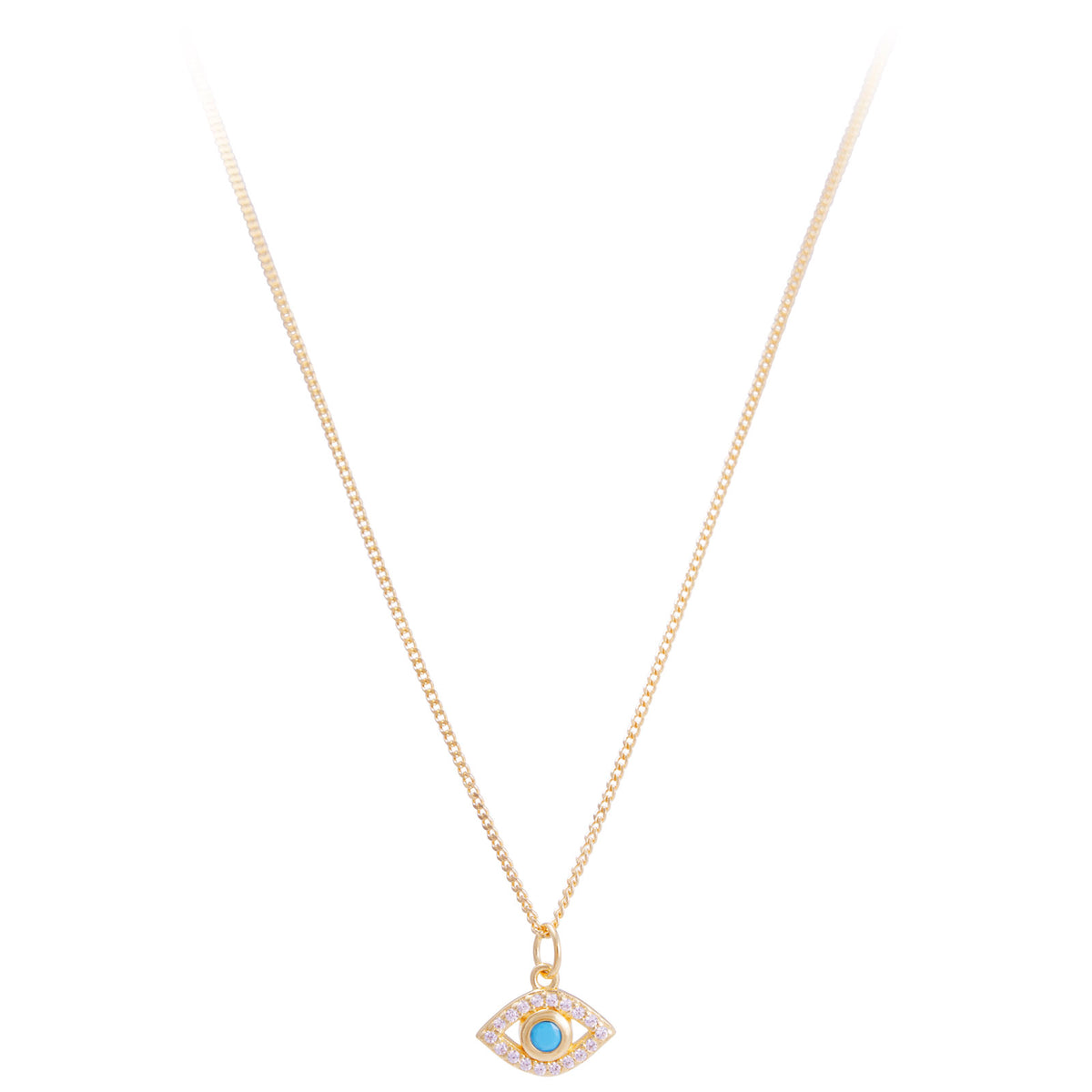 Protective and stylish, the Evil Eye Necklace is designed to ward off negativity while adding a touch of mystique to your look. Featuring a striking turquoise crystal centre and encrusted in white crystals, this piece blends ancient symbolism with modern elegance. Perfect for layering or wearing solo as a statement of strength and charm.