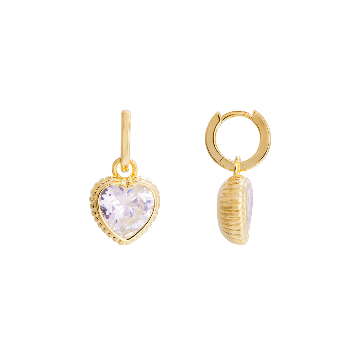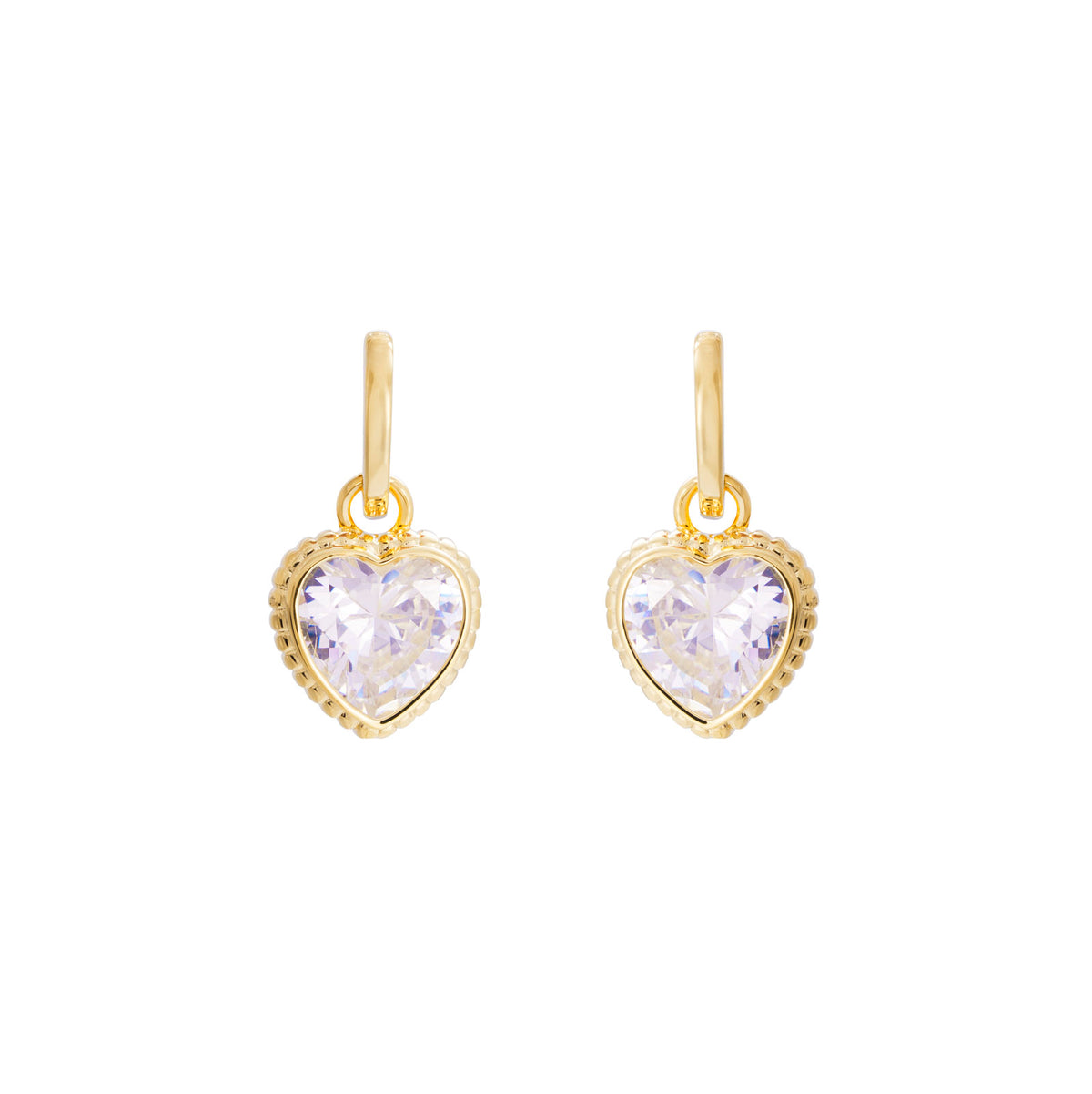 Serving full heart-throb energy. The Claudia huggies are glossy gold hoops with a mini puffed-heart charm set with a sparkling crystal at the center — basically love at first sight, but make it wearable. They’re flirty, fun, and just the right mix of sweet + statement. Perfect for stacking if you’re all about that curated ear vibe, or let them shine solo when you want all the attention (spoiler: you will).
