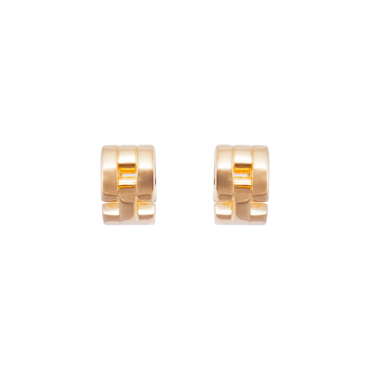 Little but loud. These snug huggies mirror your chain-link cuff with a bold, carved link texture and glossy gold shine. Slip them on and your ear stack suddenly looks… curated. Lobe-hugging fit—stackable and snag-free with link motif to match your cuff (instant set).