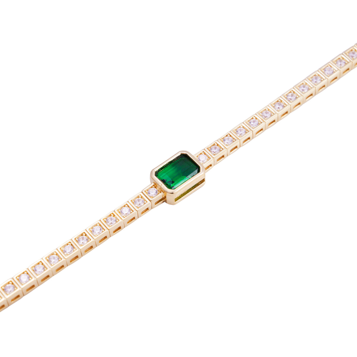 A timeless symbol of elegance, this bracelet features a sleek row of clear crystals  with a larger statement green crystal that sparkles with every movement. Sophisticated yet playful, it’s the perfect piece to add a touch of love and shine to any look.