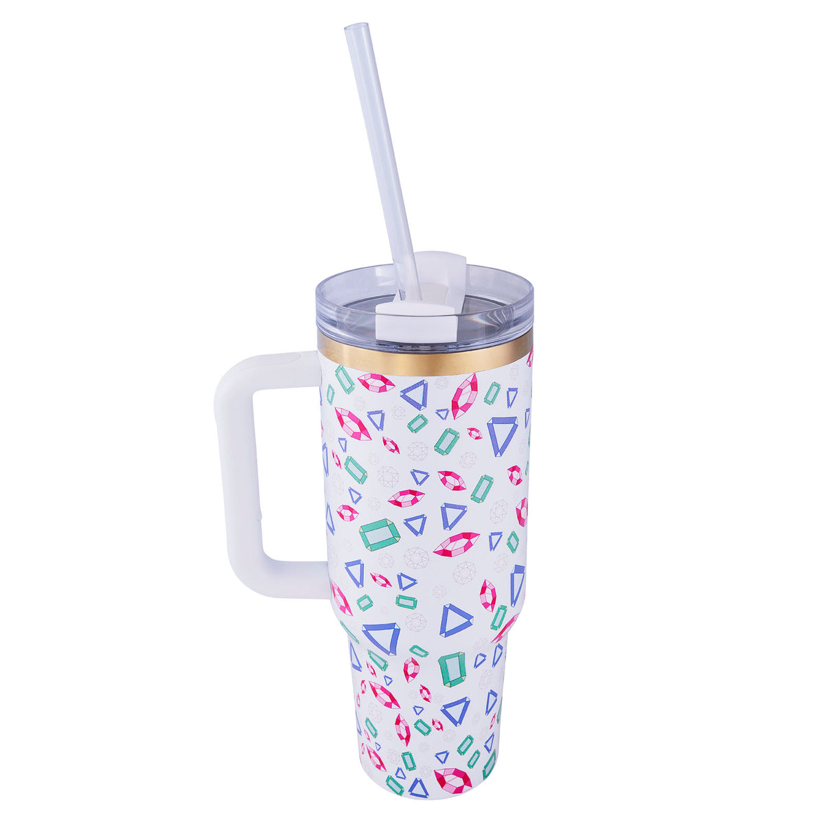 The most stylish tumbler on the market today, our jewel-embellished tumbler will keep  you looking chic while fully hydrated. Constructed of recycled stainless steel for sustainable sipping with double wall vacuum insulation for lengthy chill, this stylish portable tumbler covered in various jewels is the perfect companion for all your daily activities.