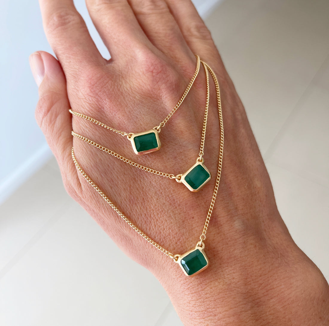The Emerald Deco Necklace showcases timeless elegance with its vibrant emerald centrepiece surrounded by intricate Art Deco-inspired detailing. Its rich green hues capture light beautifully, adding a touch of luxury and refinement to your jewellery collection.