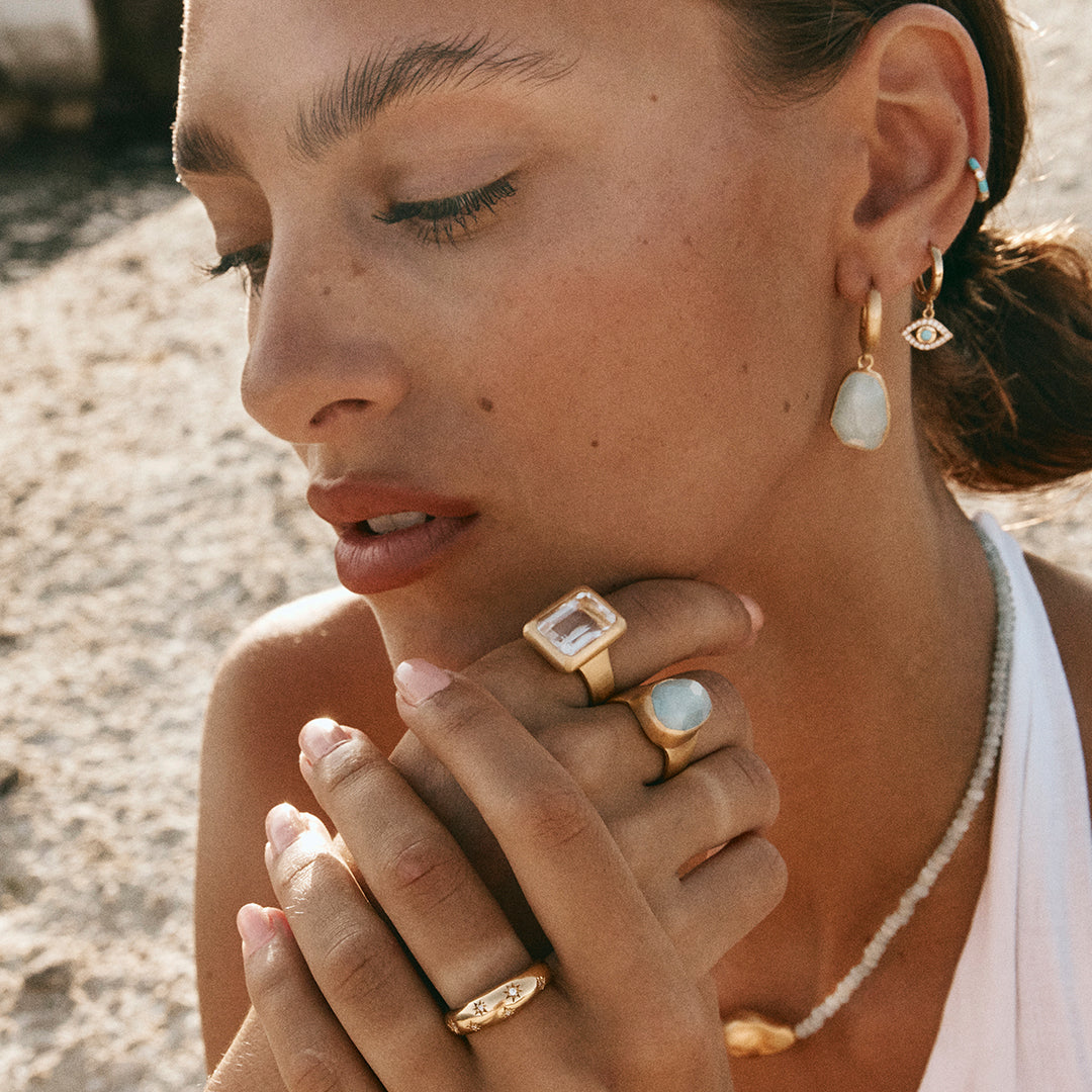 The Starburst Ring captures the brilliance of a radiant star with its dazzling design. Crafted to perfection, this ring features a striking arrangement of sparkling stones that fan out like rays of light, creating an eye-catching shimmer from every angle. Whether worn alone or stacked with other favourites, its elegant yet bold style makes it a timeless statement piece for any occasion.